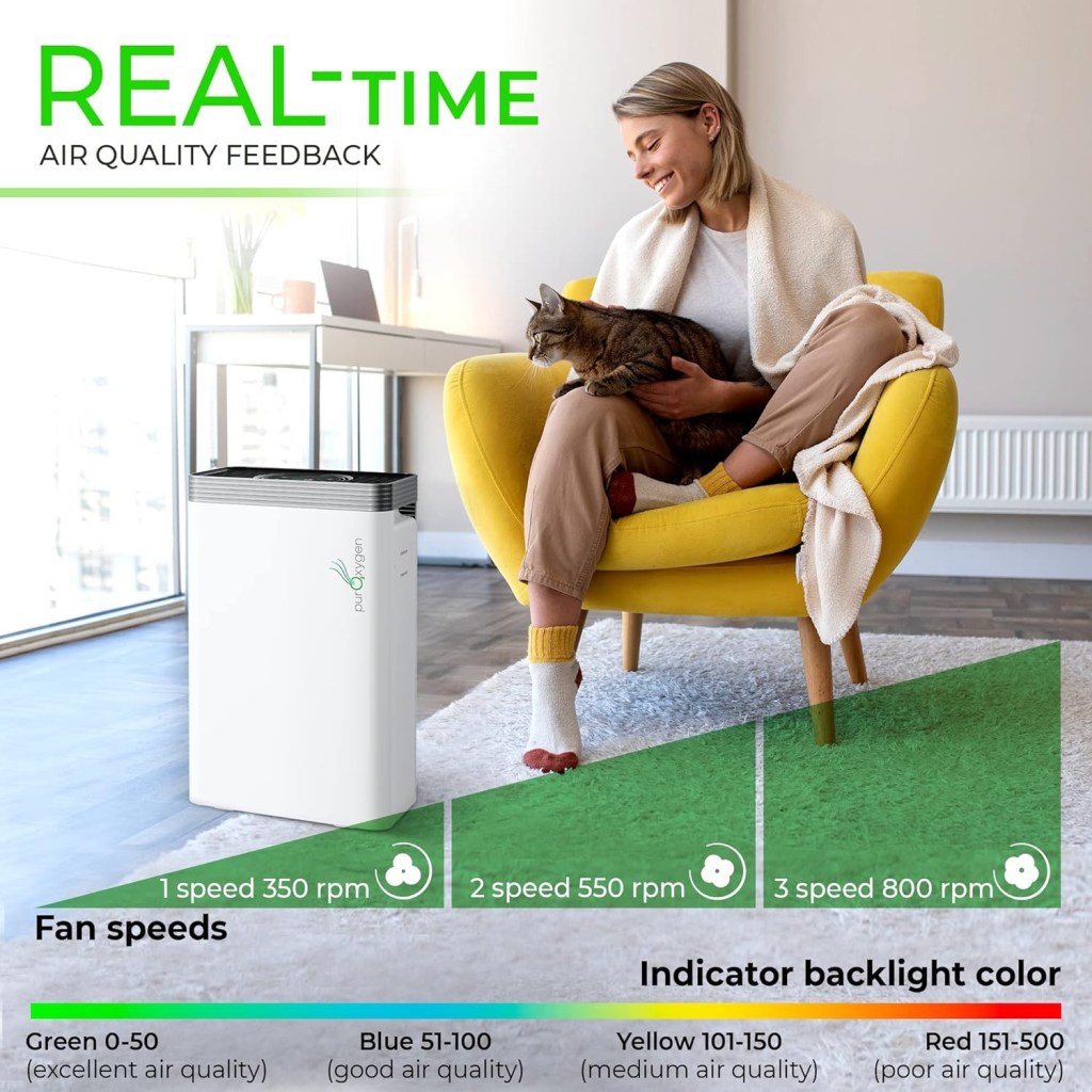 - Extensive coverage for large rooms up to 2700 sq ft, so you can purify a large area at once.